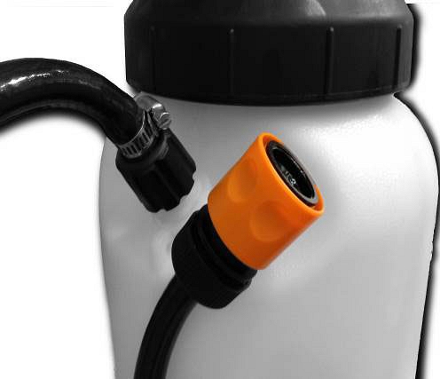 - Удобный коннектор на конце шланга позволяет быстро подсоединить бак к необходимому строительному оборудованию