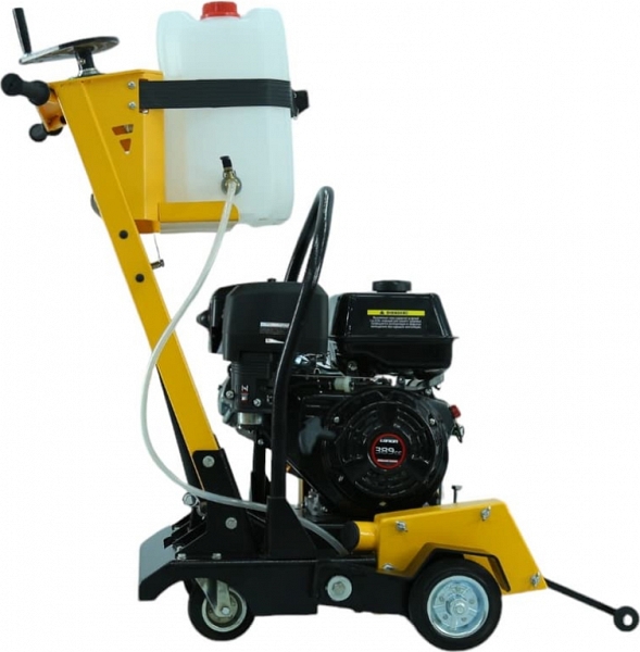 - Бензиновый двигатель Lifan 190F обеспечивает необходимую автономность работ в полевых условиях: в обычном режиме работы при глубине прямоугольного реза 6 см и ширине 1 см достигается скорость 1 м/мин по асфальту и 0,5 м/мин по бетону