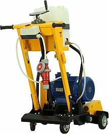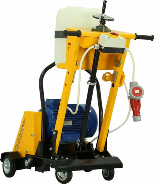 - Вращающиеся вокруг вертикальной оси задние колеса позволяют своевременно и без лишних усилий направлять в нужную сторону и вести криволинейный рез бетона, железобетона, асфальта, повторяя изгиб трещины