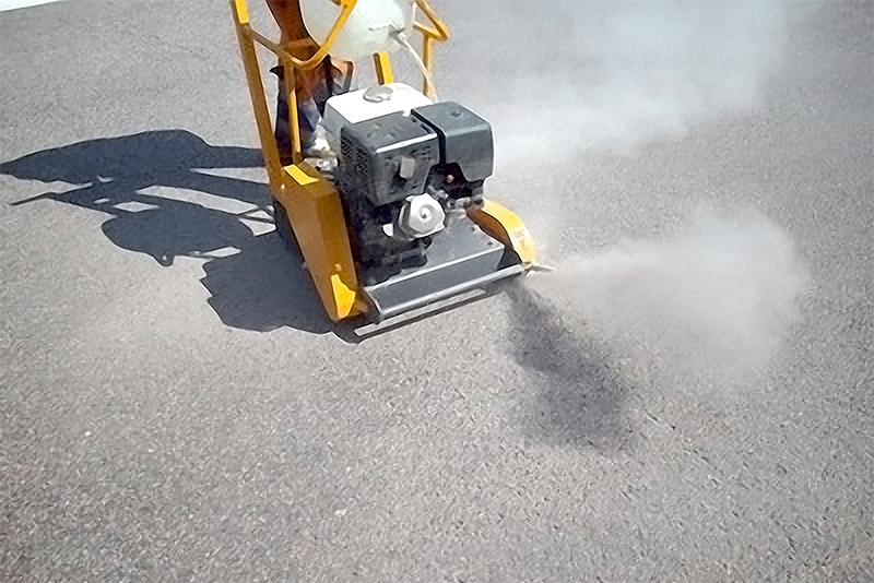 - Высокоскоростное обратное вращение алмазного диска: обратное вращение алмазного круга, а также наличие пылеотвода позволяют сразу же получать чистый шов, что исключает такие операции, как его продувка и просушка, сокращая технологический процесс ремонта дорожного покрытия