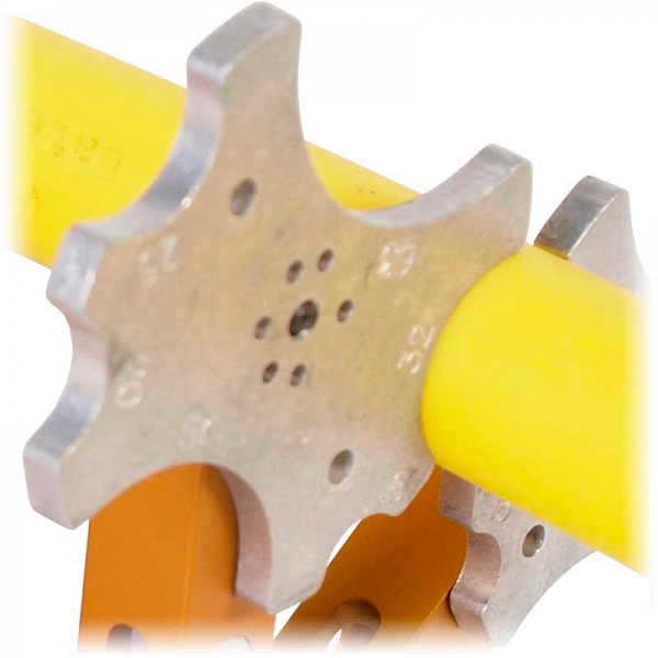- Диаметр зажимаемой трубы определяется положением 4-х зажимов, каждый из которых поворачивается вокруг оси и фиксируется в одном из 7-ти положений