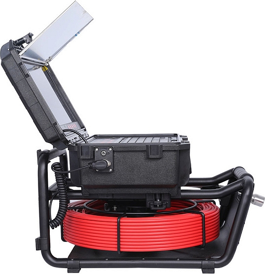 - Головка камеры Ø 29 × 50 мм и проталкиваемый кабель Ø 6,8 мм × 50 м из стекловолокна со счетчиком длины, подходящие для труб Ø 50 – 200 мм