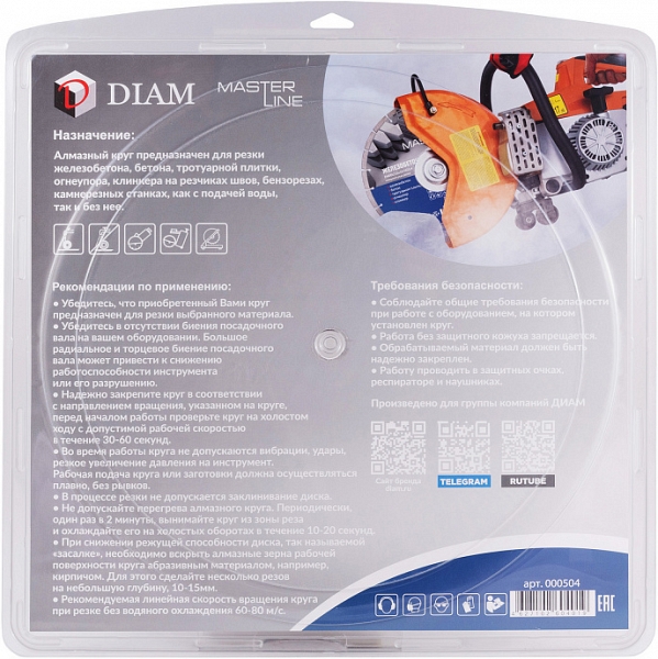 – С водяным охлаждением: предназначен для работы с водяным охлаждением, использование без подачи водяного охлаждения может привести к выходу из строя, за исключением, когда предназначен как для сухой, так и для мокрой резки - Корейские технологии: изготовлен по технологиям и под контролем ведущих производителей алмазного инструмента Южной Кореи, специально по заказу ГК Диам