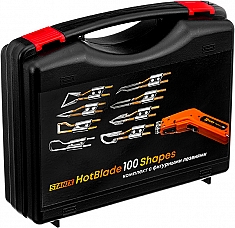 Термонож с фигурными лезвиями Stanix HotBlade Shapes (ХотБлейд Шейпс) – электрический нож с фигурными лезвиями тип A, B, C, D, E, F, G, R из хромоникелевой стали для беспыльной термической резки элементов из полимеров: полипропилена, ПВХ, полиэтилена и стиродура, полиуретана, пенополистирол (EPS) и экструдированного полистирола (XPS), картона, резины и многого другого в строительных компаниях и курьерских службах, рекламной индустрии, сфере торговли, швейной, автомобильной и электротехнической промышленности, а также в мебельном производстве и архитектурном моделировании, подходит для внутренних и наружных работ, безотходной резки, моделирования, строжки и обрезки теплоизоляционных материалов, идеально подходит для резки изоляционных плит, формирования пазов для электрических или сантехнических установок, с легкостью прорезает пенокартон, пенополистирол, пластиковую упаковку, резину и многие другие материалы, с которыми не справляется обычный нож.