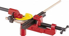 – Желтые стандартные сегменты: Ø труб 10 – 22 мм, толщина стенки труб 1 - 1,5 мм, угол изгиба 0° – 180°, малый радиус изгиба - Дополнительная принадлежность для крепления на верстаке: опорное основание, в которое устанавливается трубогиб, экономит место и позволяет работать в горизонтальном и вертикальном положении, хранится в чемодане для трубогиба