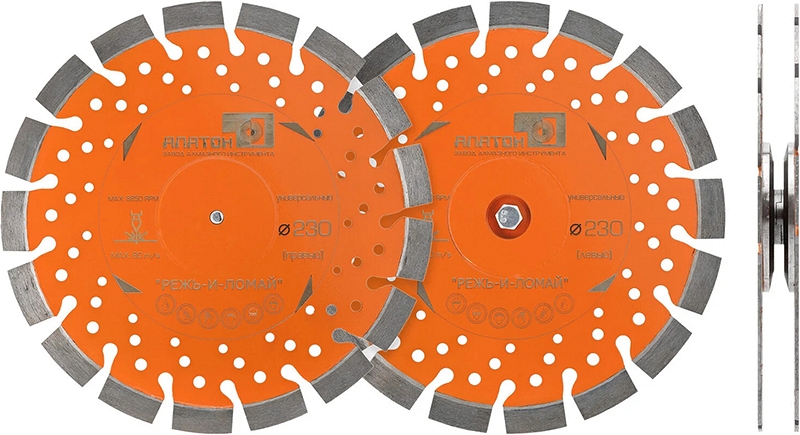 Преимущества универсальных алмазных дисков Алатон Режь-и-Ломай 230 мм: