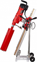 Установка алмазного бурения Diam PL-500/3ADC-1000 (Диам ПЛ-500/3АДЦ-1000) – мощная трехскоростная алмазная сверлильная машина с наклонной стойкой для сверления отверстий в бетоне и железобетоне, кирпичной кладке и других строительных материалах Ø 50 – 500 мм, под углом до 180°, в строительстве, при электромонтажных работах, прокладке сантехнических и вентиляционных труб, отбора проб грунта, высверливании проемов в стенах, а также для частного ремонта.