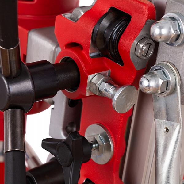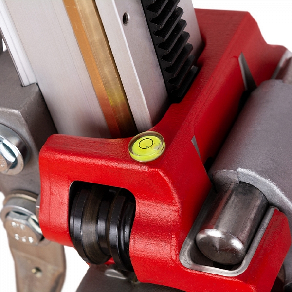 - Алюминиевая колонна со стальным основанием и электродвигатель, закрепленный на рабочей каретке с быстросъемным креплением "ласточкин хвост", которая перемещается по стойке с помощью стальной зубчатой рейки