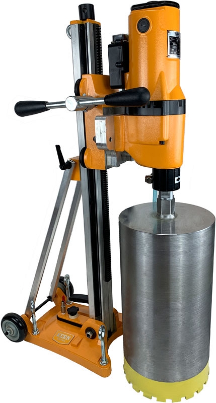 Установка алмазного бурения Kern DM-300GL (Керн ДМ-300ГЛ) предназначена для алмазного сверления отверстий в бетоне, железобетоне разной степени армированности Ø 30 – 300 мм и в кирпичной кладке Ø 30 – 350 мм под углом до 45° с подачей воды. Подходит для бурения различных абразивных материалов, незаменима при монтаже, демонтаже и реконструкции зданий и сооружений, эстакад и мостов; для алмазной резки ниш и проемов; при прокладке инженерно-технических сетей и коммуникаций, канализации и отопления, установки кондиционеров и вентиляции, газопровода, водопровода и т.д.; для взятия проб-кернов при строительстве дорог, бурения пород в геологических изысканиях и шахтах.
