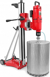 - Благодаря мощному двигателю с трехскоростным редуктором способна эффективно работать с алмазными коронками Ø до 500 мм и посадкой 1 1/4"
