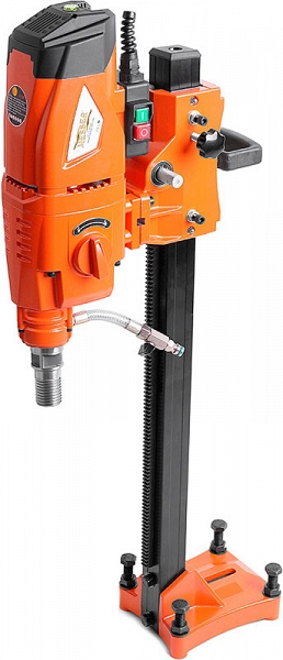 Установка алмазного сверления Messer VS250-DM250 (Мессер ВС250-ДМ250) – легкий и недорогой комплект алмазного бурения для сверления отверстий Ø до 250 мм в бетоне, железобетоне, кирпиче и других строительных материалах, под углом 90°, с подачей воды.