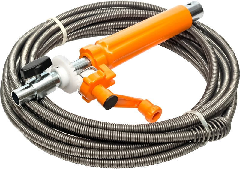– Позволяет подключать дрель-шуруповерт для вращения прочистной спирали, делая более удобной и эффективной прочистку трубы от засора